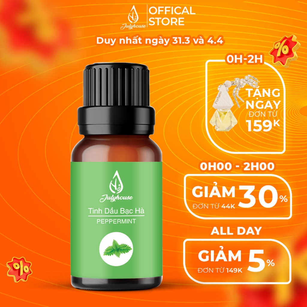 Miễn phí đổi trả nếu bán hàng kém chất lượng. Hiện tại [Mã LIFEMALL991 giảm 10% đơn 99K] Tinh dầu Bạc Hà thơm phòng, giải cảm Julyhouse 10ml đang được giảm giá chỉ còn 45,570đ. Số lượng có hạn hãy nhanh tay đặt khi còn hàng bạn nhé